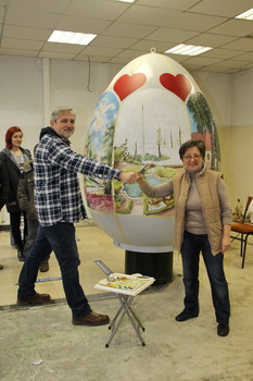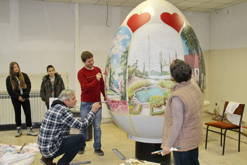 Projekt je započeo kupnjom impozantnog uskrsnog jajeta veličine 205 x 160 cm, izrađenog od poliesterskog kompozita, materijala koji omogućuje upotrebu uljnih i akrilnih boja. Likovna radionica koju vodi toplička umjetnica Marija Čukelj okupila je tim poznatih slikara stubičkog kraja: Ivicu Mlinarića, Nikolu Sinkovića, Dragu Cvjetića, Željka Breku i Radmila Mihajlovića. Jaje je podijeljeno na šest cjelina kako bi svaki autor dobio prostor za umjetničko izražavanje.